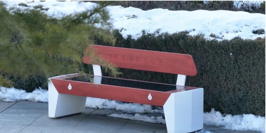 冬日暖阳洒在甘肃崇信县劳动文化公园,职工李女士坐在崭新的光伏座椅上,一边享受午后休憩,一边用无线充电托盘给手机补电。“以前在公园散步手机没电就特别着急,现在晒着太阳就能充电,工会真是把服务做到我们心坎上了!”她笑着说。