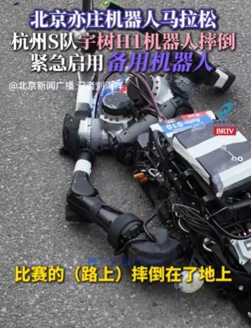 有媒体报道,杭州S队的宇树H1机器人比赛途中不幸摔倒了,紧急启用备用机器人。